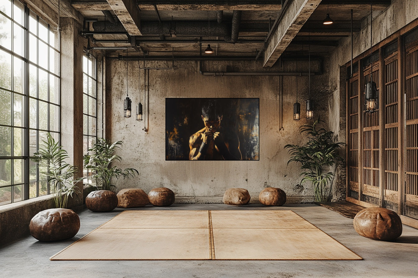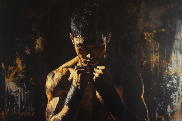 Les couleurs ocres et bronzes sculptent littéralement le corps. Chaque coup de palette crée un relief où la musculature devient topographie de l'effort. Un portrait où l'homme devient monument, l'athlète devient sculpture vivante.